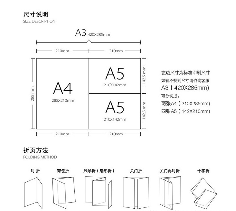 印刷品尺寸有:成品尺寸和印刷尺寸兩種,成品尺寸是最終產(chǎn)品的尺寸,成品尺寸向四周各加3mm